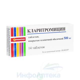 Кларитромицин тбл п/п/о 500мг №14