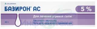 ФармакокинетикаПроникновение бензоила пероксида через кожу низко. Основная часть бензоила пероксида превращается в бензойную кислоту, которая после абсорбции попадает в системный кровоток и быстро выводится почками. Отсутствует кумуляция в тканях. Накожное применение Базирона® АС в терапевтических дозах не приводит к побочным эффектам системного действия.