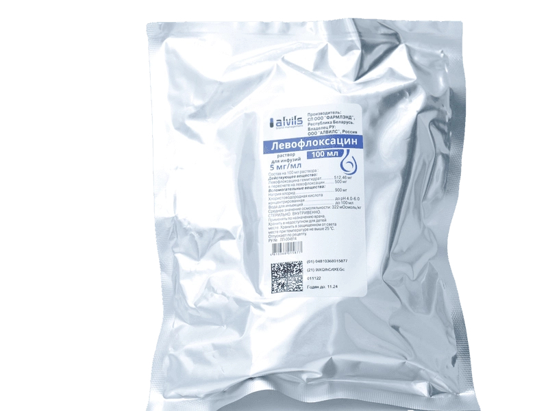 1 мл - левофлоксацин 5 мг, 1 бут. - левофлоксацин 500 мг