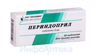 Отпускается по рецепту Да Производитель Биохимик АО Страна производителя Россия Действующее вещество Периндоприл Форма выпуска таблетки Дозировка 8 мг Общее количество в упаковке 30 Условия хранения В защищенном от света месте, при температуре не выше 30 °C Срок годности 2 года -