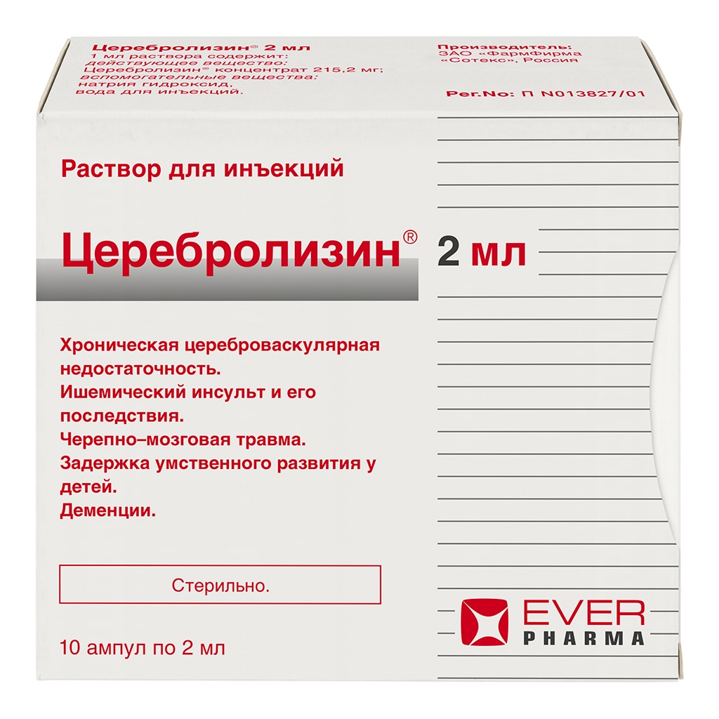 Отпускается по рецепту Да Производитель Эвер Фарма Йена ГмбХ Страна производителя Германия Действующее вещество Церебролизин -