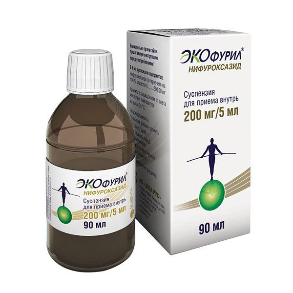 Суспензия для приема внутрь содержит 200мг нифуроксазида в 5мл суспензииФармакологическое действие: