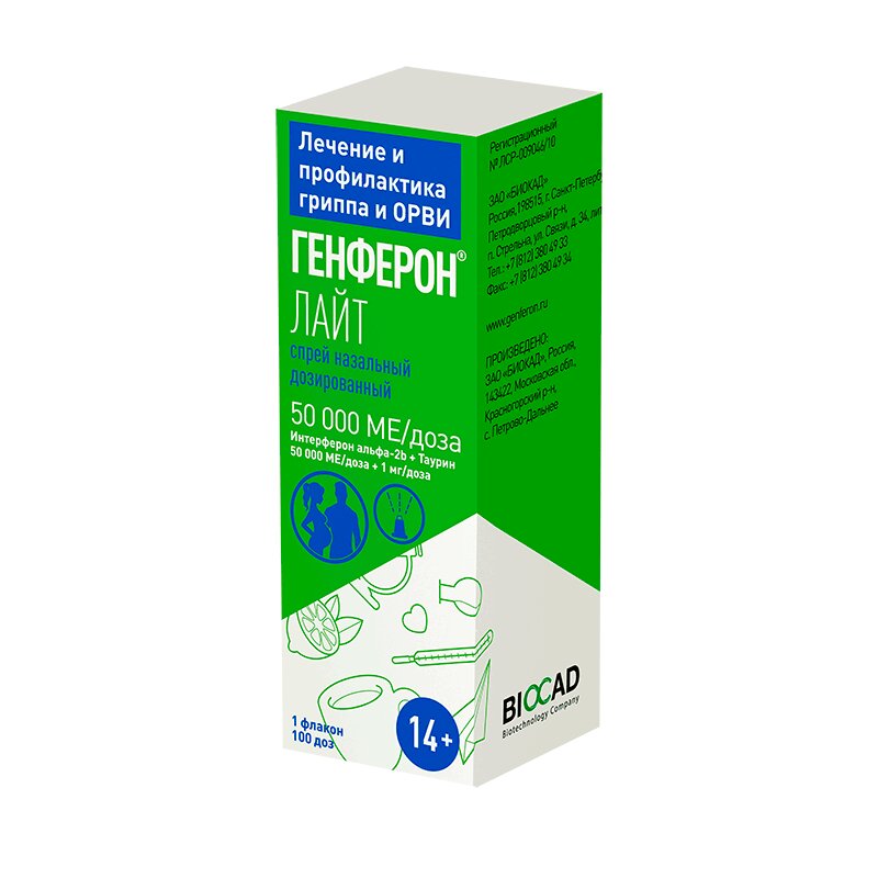 Генферон Лайт спрей наз дозир 50тыс.МЕ+1мг/доза 100доз