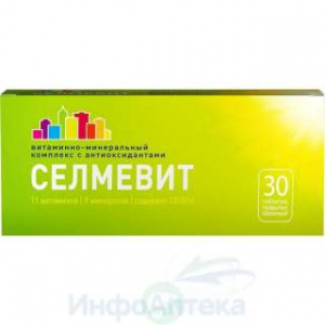 - Активные вещества: ретинола ацетат (вит. А) 0.568 мг (1650 МЕ),?-токоферола ацетат (вит. E) 7.5 мг, аскорбиновая кислота (вит. С)35 мг, тиамина гидрохлорид (вит. B1) 0.581 мг, рибофлавин (вит. B2)1 мг, кальция пантотенат 2.5 мг, пиридоксина гидрохлорид (вит. B6)2.5 мг, фолиевая кислота 0.05 мг, цианокобаламин (вит. B12) 0.003мг, никотинамид 4 мг, рутозид (рутин) 12.5 мг, тиоктовая (липоевая)кислота 1 мг, метионин 100 мг, кальций (в форме кальциягидрофосфата дигидрата) 25 мг, магний (в форме магния гидрофосфататригидрата и магния карбоната) 40 мг, фосфор (в форме кальциягидрофосфата дигидрата и магния гидрофосфата тригидрата) 30 мг,железо (в форме железа сульфата гептагидрата) 2.5 мг, медь (в формемеди сульфата пентагидрата) 0.4 мг, цинк (в форме цинка сульфатагептагидрата) 2 мг, марганец (в форме марганца сульфатапентагидрата) 1.25 мг, селен (в форме натрия селенита) 0.025 мг,кобальт (в форме кобальта сульфата гептагидрата) 0.05 мг ;
